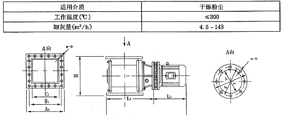 用途 該閥又名葉輪給料機、回轉(zhuǎn)下料器等,普遍適用于建材、冶金、化工、電力等部門作為各類除塵設(shè)備的卸料裝置及各種磨機、烘干機、料倉等設(shè)備的給卸料裝置。 結(jié)構(gòu)特點 該閥采用鋼板焊接結(jié)構(gòu)、葉片耐磨性好、葉片與傳動軸鋼性連接、結(jié)構(gòu)緊湊、工作可靠、輕便節(jié)能。 工作原理 該閥由閥體、傳動軸、葉片和減速器等組成,減速電機帶動軸和葉輪旋轉(zhuǎn),完成給卸料。 型號編制說明